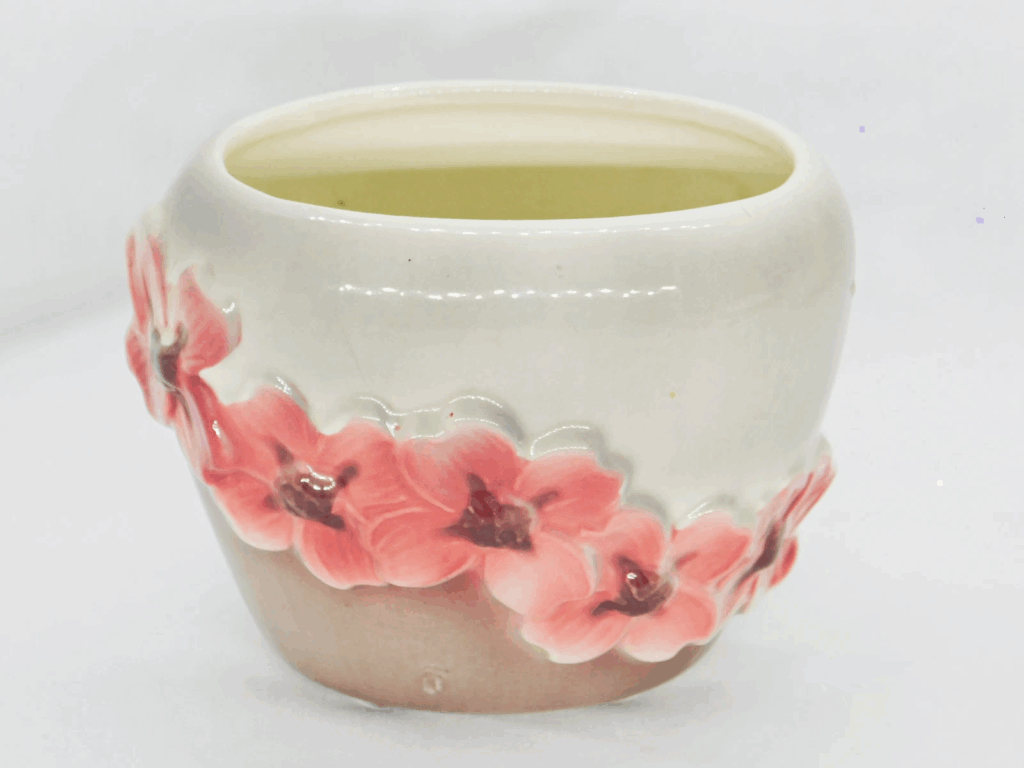 Royal Copley’s Dogwood planter from the 1950s showcases the company’s dedication to floral-themed designs, featuring delicate dogwood blossoms in relief. Made in the United States, it reflects the mid-century appreciation for nature-inspired motifs. At its debut, it was an affordable decorative piece, appealing to those looking to incorporate natural elements into their home dcor. Today, it is valued between $25 and $50, depending on condition and market demand. Collectors appreciate it for its craftsmanship and the timeless beauty of its design.