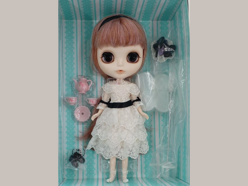 Collectors are drawn to Lacey’s timeless look, with her soft colors and vintage charm making her a standout. Her delicate lace dress is the highlight of her design, and her accessories, including shoes and stockings, complete her nostalgic appeal. Well-preserved dolls with their original box are particularly valuable. Lacey continues to be a must-have for those who appreciate retro-inspired Blythe dolls.