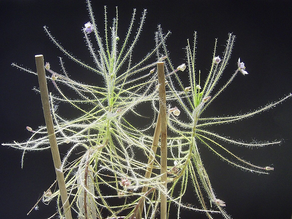 Byblis, also known as rainbow plants, are a lesser-known group of carnivorous plants that capture prey using sticky glands on their leaves. The plant’s leaves have a glistening, translucent appearance that helps attract insects. When an insect lands on the surface, it becomes stuck to the sticky hairs.