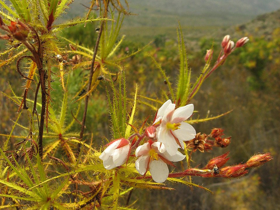 Roridula is a rare carnivorous plant found in southern Africa. Unlike most carnivorous plants, it does not digest its prey directly. Instead, the plant uses its sticky resin-covered leaves to capture insects, much like the sundew. However, the real trick lies in the relationship it has with a special type of bug known as the Roridula bug.