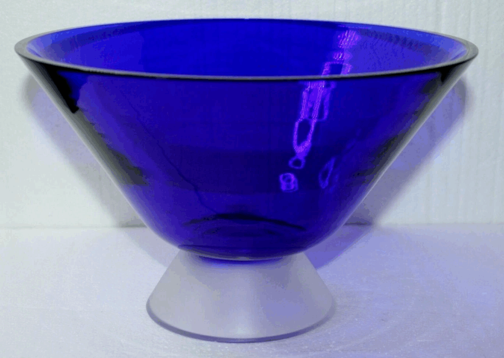 The Cobalt Blue American footed fruit bowl was first introduced in the 1930s, capturing the essence of the Depression era with its bold color and elegant design. Known for its thick glass and sturdy construction, this bowl was both practical and decorative in mid-century homes. Its footed design set it apart, giving it a refined, elevated look that made it a favorite for special occasions. As a result, this piece continues to be highly sought after by collectors. Depending on its condition, the current market value for an American footed fruit bowl can range from $100 to $200.