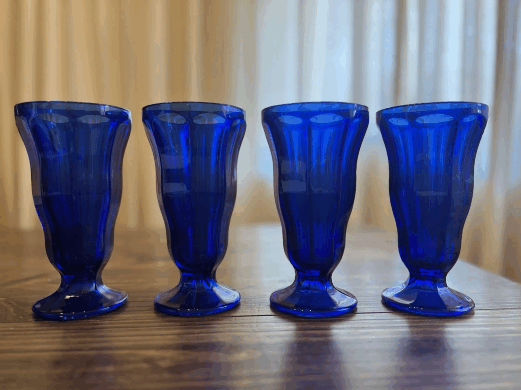 Hazel-Atlas introduced its cobalt blue glassware in the 1930s, creating items that became popular for both their beauty and utility. Known for their rich color and simple yet elegant designs, Hazel-Atlas cobalt blue glasses were used in both homes and restaurants. The glasses often feature smooth, clean lines and sturdy construction, making them perfect for daily use. Today, these glasses typically range in price from $30 to $80, depending on the style and condition.