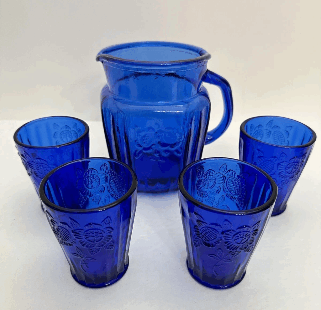 Introduced in the 1920s, cobalt blue Depression glass quickly became a favorite in American homes, admired for its bright, vibrant color. These pieces were functional for everyday use but also made a bold statement in any room. The glassware’s unique color and elegance made it highly desirable among collectors. Over the years, cobalt blue Depression glass has become a symbol of the era, loved for both its beauty and craftsmanship. If you have an interest in vintage glass, this collection is something you won’t want to miss.