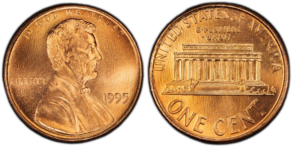 A few 1995 Lincoln cents were struck with a doubled image on the date and lettering. This happened when the die was misaligned and created an extra impression that is visible on the front. Collectors often look at these pennies with magnifiers to see how clear the doubling is. A well-kept example can fetch $300 to $500 in the market today.