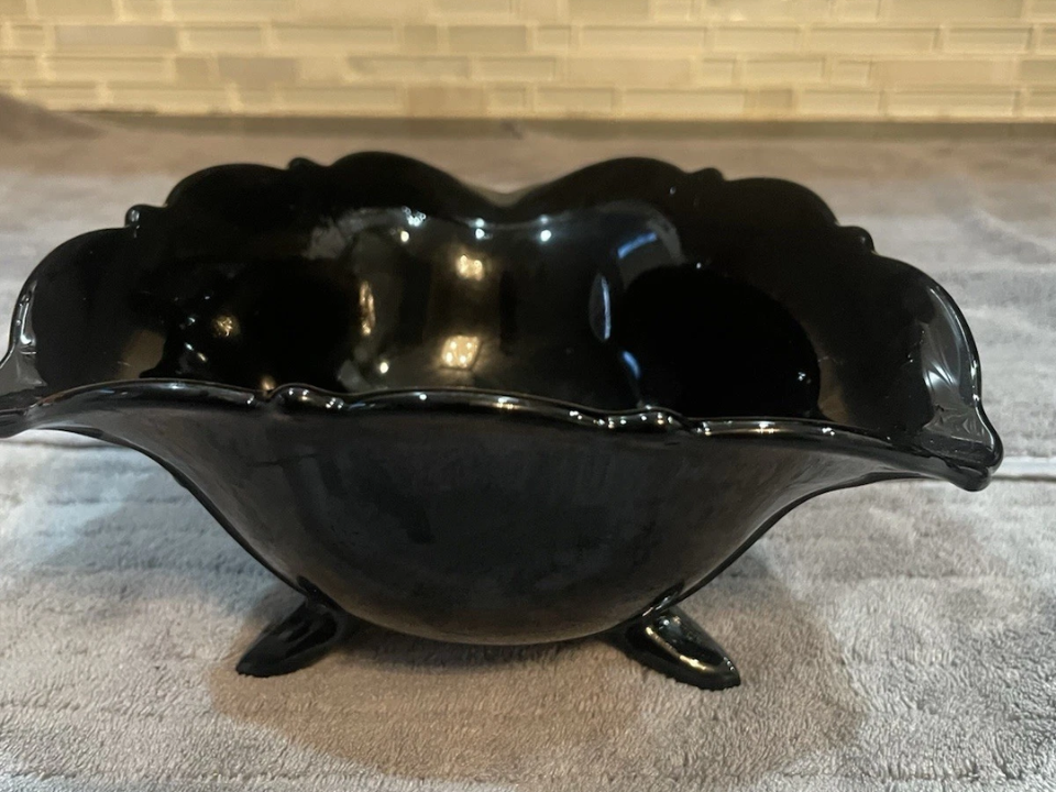 Black Depression glass is one of the rarer colors from the era, making it a prized collectible. Produced in patterns like “Onyx” and “Reverse Glass,” black glassware was often used for serving items like trays and bowls. The sleek, dark hue gave these pieces a striking look.