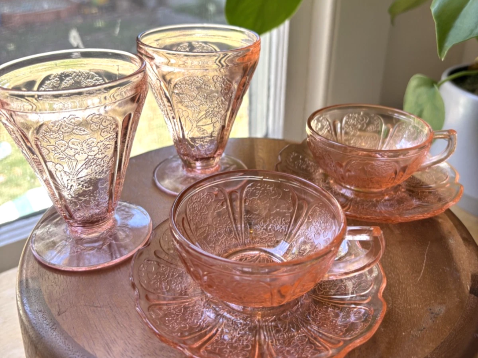 Peach Depression glass, with its soft, warm hue, was another popular color during the Depression era. It was featured in many different patterns, such as “Peach Opalescent” and “Silver Rose.” The color was both elegant and accessible, making it a common choice for households at the time.