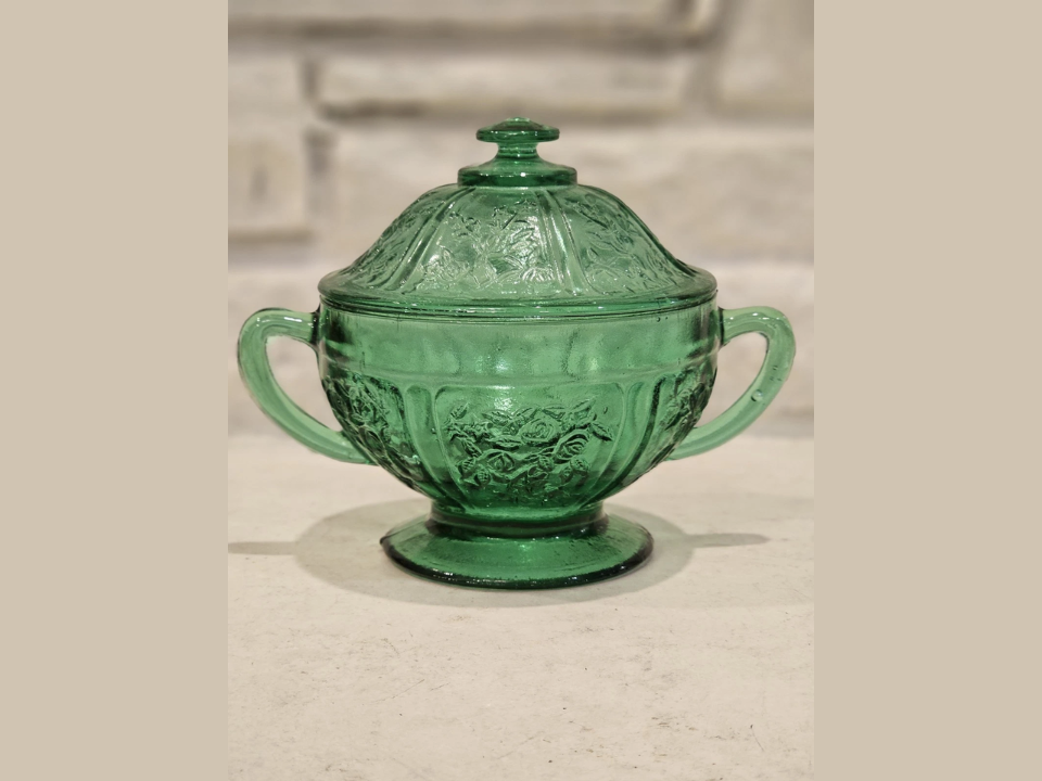 Green Depression glass was a popular color during the Depression era. The glass was often made in translucent green and was featured in a variety of patterns like “Sharon” and “Horseshoe.” The color was considered elegant and affordable, making it a widespread choice for household items such as bowls, pitchers, and glasses.