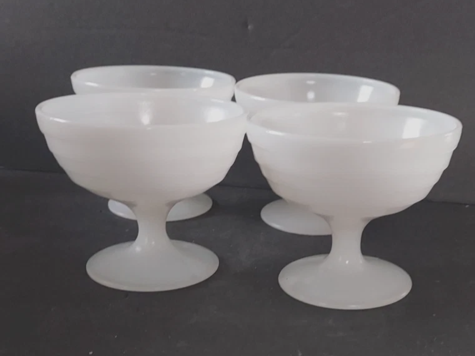 White Depression glass, also known as “Milk Glass,” was a common color choice during the 1930s and 1940s. Its smooth, opaque finish made it a versatile choice for household items, ranging from bowls to candy dishes. Patterns like “Boston” and “Daisy” were popular in white glassware.