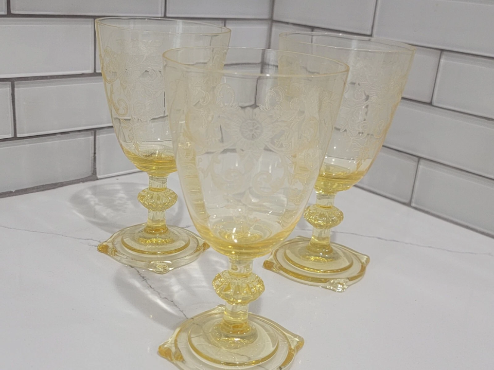 Yellow Depression glass was another bright and cheerful color that was widely produced during the era. Its sunny hue was associated with optimism and hope, fitting well with the cultural mood of the time. Popular patterns like “Colonial” and “Sunburst” were produced in this color.