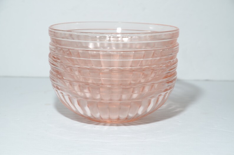 Collectors like this pattern for its simplicity and symmetry, which represent early modern design trends. It includes a range of pieces from tumblers to serving dishes. Larger serving bowls are particularly prized due to breakage over time. Genuine items have sharp, well-pressed edges and a rich hue. The Block Optic remains a classic that blends nostalgia and beauty in one collection.