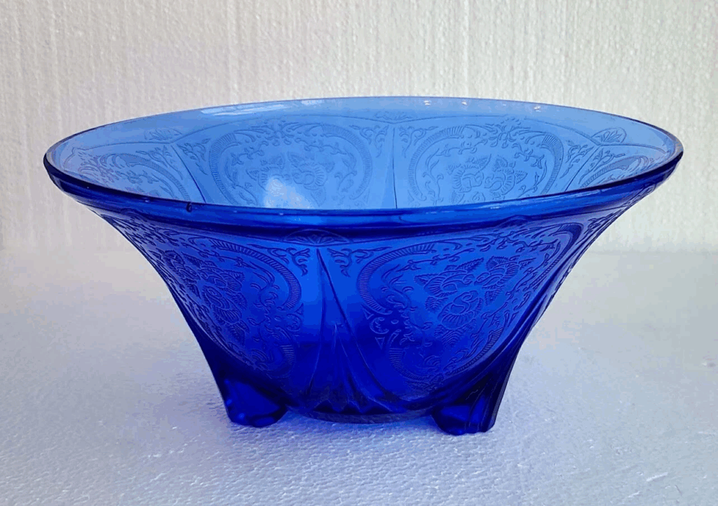 The Georgian pattern by Federal Glass appeared in the 1930s and quickly became a household favorite. Its bold geometric shapes and deep cobalt blue color made it stand out among pastel-toned Depression Glass. The pieces were sold in sets and through promotional programs, but full sets have become increasingly rare. The unique texture and durability give them collectible appeal today. Individual pieces are often valued between $150 and $350.