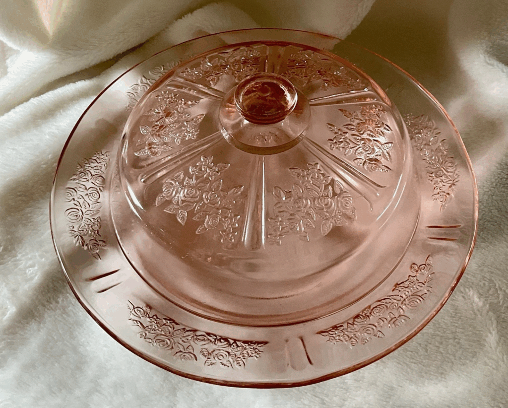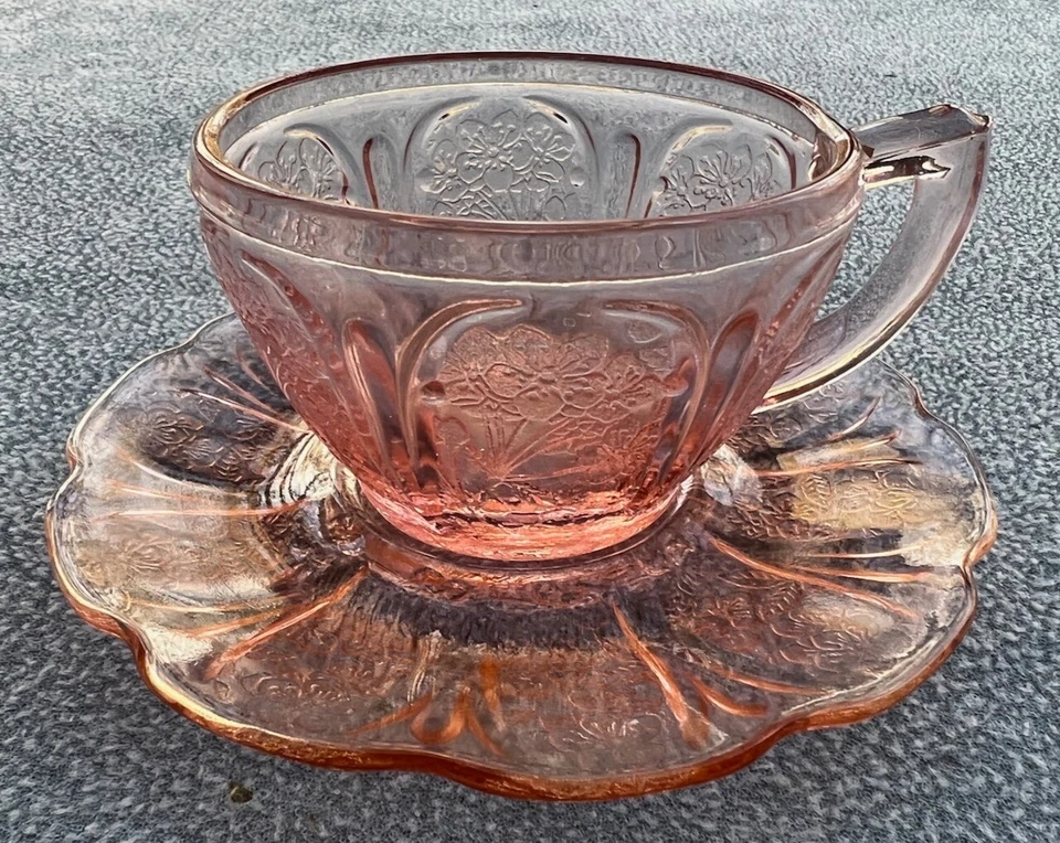 This pattern was created for dinnerware, including plates, bowls, and serving pieces, but is also found in depression glassware sets. Over time, the Cherry Blossom pattern has become one of Hocking Glass’s most iconic designs. The delicate floral pattern evokes a sense of spring and renewal, making it a favorite among vintage glass collectors. Pieces in excellent condition, especially those with clear, undamaged glass, are especially prized. This enduring pattern remains a staple in the world of Depression glass collecting.