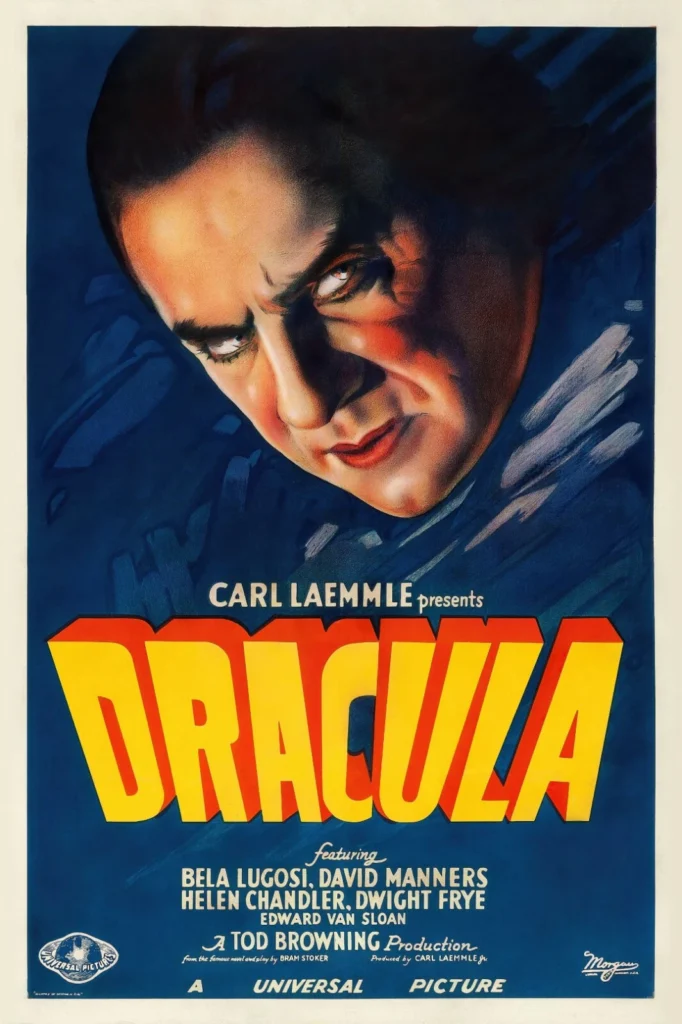 The Dracula poster featuring Bela Lugosi’s hypnotic stare set the visual standard for all vampires that followed. Its design balanced menace with elegance, showcasing the power of Universal’s early monster era. Many early prints were destroyed after use, leaving only a few examples today.