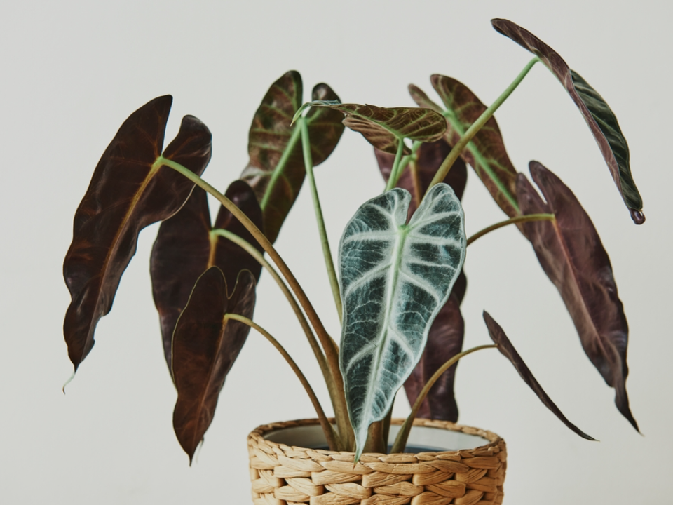 The Alocasia Polly, often known as the African Mask Plant, is a unique plant that is revered for its striking, arrow-shaped leaves. The deep green foliage contrasts beautifully with the white veins running across it, creating a dramatic effect that appeals to many plant enthusiasts. It prefers bright, indirect light and consistently moist, well-draining soil to thrive. While it is relatively easy to care for, it can be a bit temperamental in terms of humidity, requiring a humid environment to stay healthy.