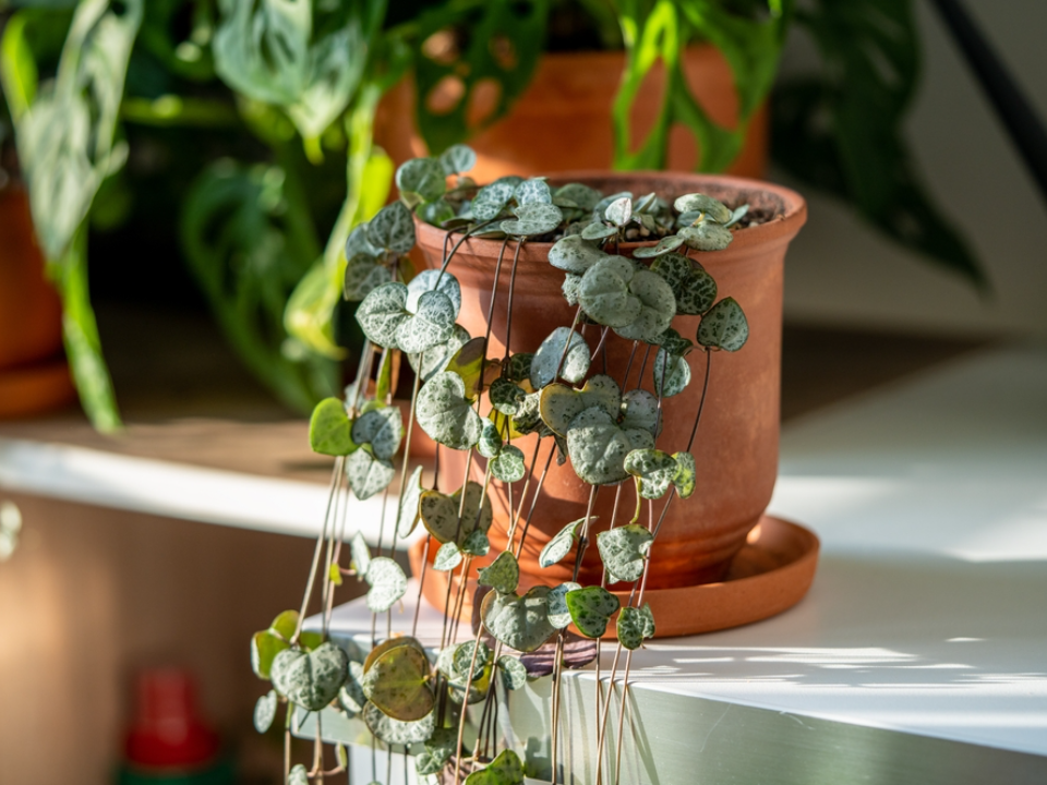 The String of Hearts is a charming, trailing plant that features small, heart-shaped leaves. Its delicate vines can grow long, creating an elegant, cascading effect, which makes it a perfect addition to hanging baskets or shelves. It is a low-maintenance plant that requires minimal attention, making it ideal for people with busy schedules. It thrives in bright, indirect light and only needs to be watered when the soil is dry.
