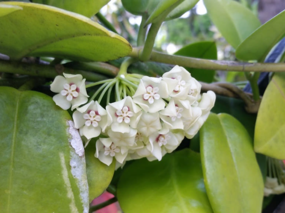 Hoya australis is particularly appreciated for its resilience and ability to thrive in a variety of conditions. While it requires bright, indirect light to grow, it can also tolerate lower light levels. The flowers of this Hoya are star-shaped and cream-colored, often with a pink center, adding a delicate touch to its overall appearance. With proper care, Hoya australis can develop into a sprawling vine with dense foliage, making it an excellent choice for vertical gardens or large pots.