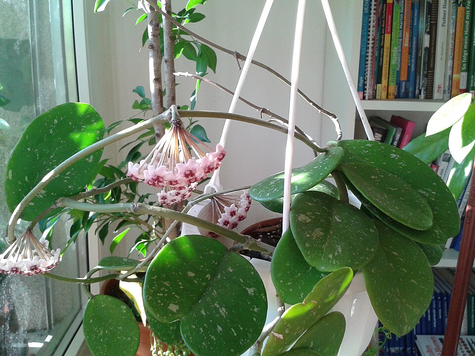 The plant thrives in indirect light and is not as sensitive to low light conditions, which makes it adaptable for various indoor settings. Hoya polyneura produces beautiful clusters of pinkish-white flowers that give off a subtle, sweet fragrance. As it matures, the vines will form a dense mass, making it an ideal choice for a hanging basket or wall-mounted trellis.