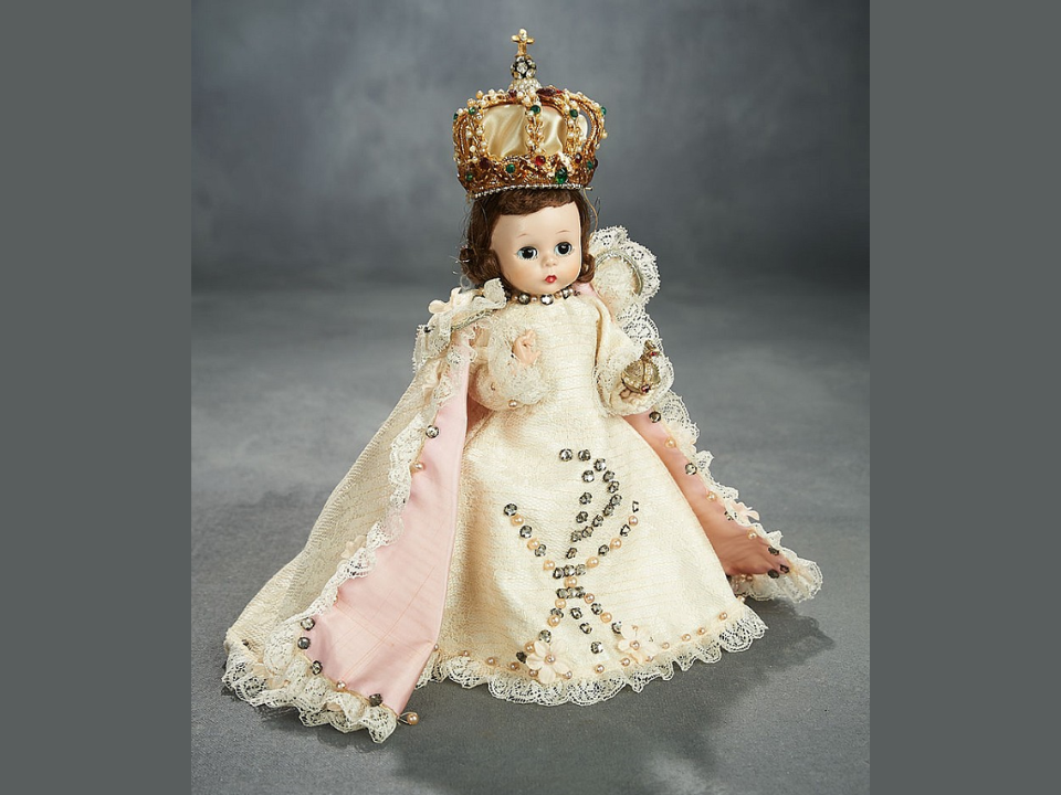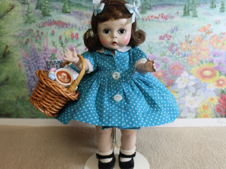 This 1951 Mary Had a Little Lamb doll is a charming figure that harkens back to classic nursery rhymes and children’s literature. Dressed in a sweet, white lamb costume, this doll captures the innocence and playfulness of childhood. It was one of the early special-edition dolls produced by Madame Alexander and remains a popular piece for collectors who are interested in vintage dolls with a literary connection.