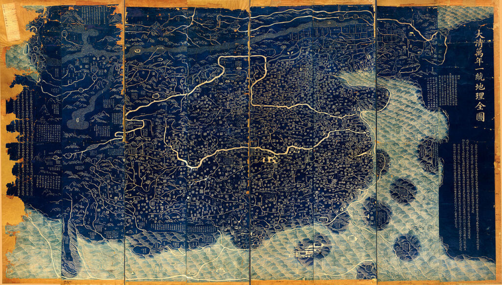 Created by Qianren Huang in 1814, this map offers a comprehensive depiction of the Qing Empire at its territorial zenith. The map was based on research conducted for the Qianlong emperor in 1767, and it highlights the empire’s vast territory, stretching from the Eastern Sea to Central Asia. It was designed to help the Qing dynasty maintain control over its extensive land and peoples, serving both a political and military purpose. The map is notable for its precise detailing of the empire’s borders and its representation of China’s influence in the region. It provides valuable insights into the geopolitical concerns of the Qing Dynasty in the early 19th century.