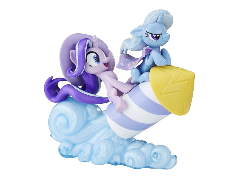 Fans of this set often speak about how Rainbow Dash’s dynamic pose stands out on shelves. The pairing feels natural because it reflects the close bond between characters in the series. Because it was part of a smaller release, finding one with all pieces can take patience. Those with original boxes or tags usually have a better value.