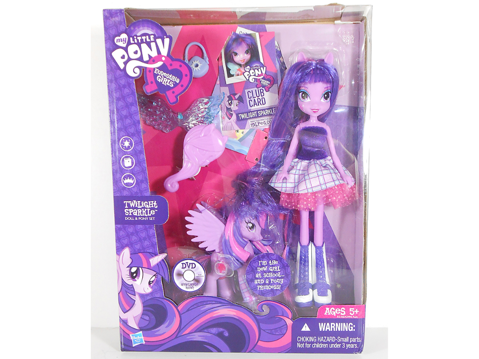 Many people enjoy this set because it brings two versions of Twilight Sparkle together in one display. The pony companion often includes a brush and hair ties that were part of the original packaging. Because only a limited number were made, the set has become harder to find. Those with minimal wear are usually priced on the higher end.