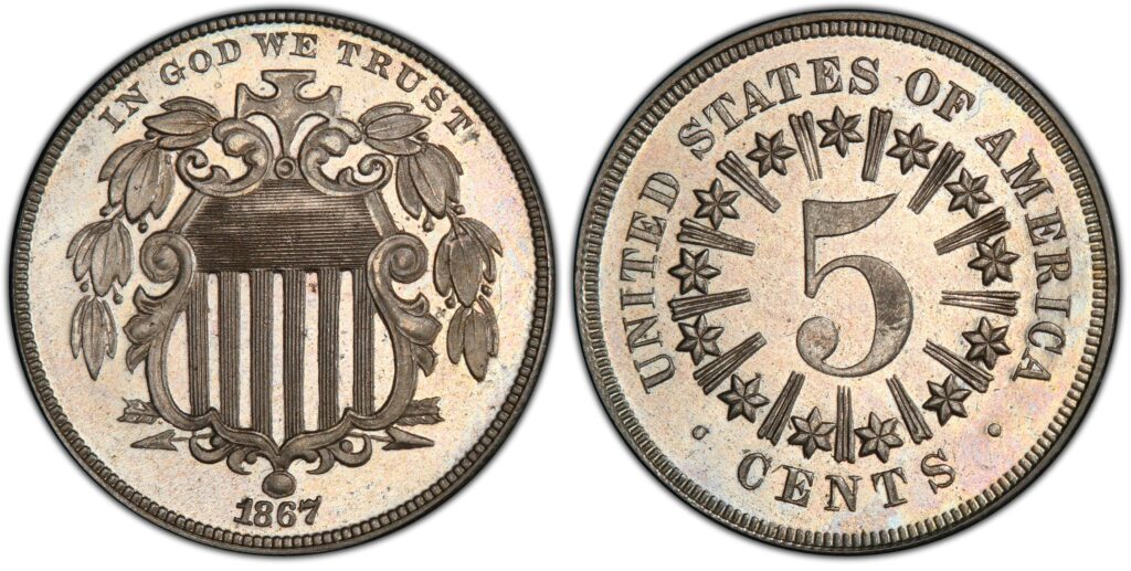 This coin was created during a time of change in U.S. coinage, making it interesting for historical collections. The details on the rays are usually sharp in proof versions, adding to their appeal. Surviving examples in high grade are few and can sell for several thousand dollars. A well-preserved 1867 Shield Nickel Proof With Rays is estimated to be worth over $50,000.