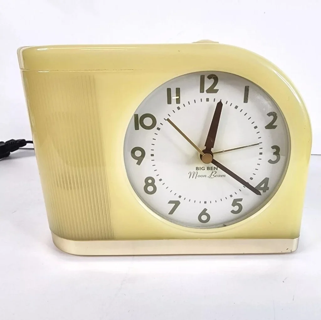 Collectors look for early versions with cloth cords and metal cases. Restored models still function beautifully with their original light feature. The Moonbeam’s mix of practicality and style makes it a favorite among mid-century fans. It remains one of Westclox’s most charming creations.