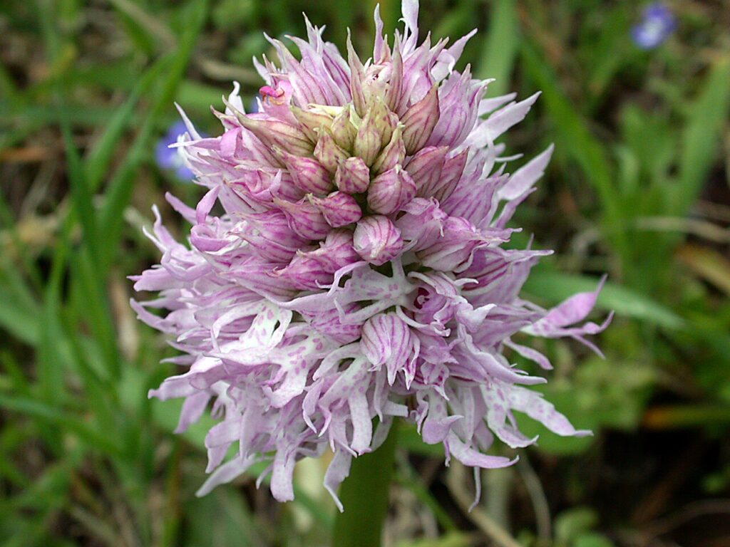 Across the Mediterranean Basin from Spain to Turkey, Orchis italica pops up in sunny meadows and rocky slopes. Each flower spike carries pink or purple blooms whose lips split into dangling lobes that look like arms and legs. The plant thrives in mild winters and warm, dry summers that match its home hillsides. It prefers gritty, well drained soil that does not stay wet for long periods.