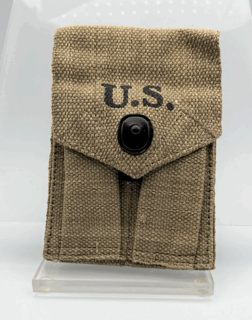 This pouch was designed to hold extra magazines for the M1911 pistol, a weapon used by U.S. paratroopers during WWII. The pouch’s design allowed for quick access to additional ammunition during combat, making it essential for paratroopers. The rarity of these pouches comes from the fact that they were produced in limited quantities and many were damaged or lost during operations. Today, these pouches are highly valued for their historical significance. Depending on condition, M1911 magazine pouches are valued between $75 and $100.