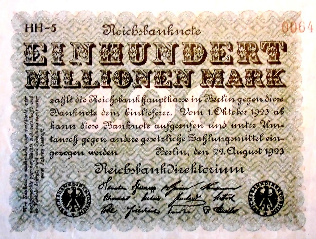 During the hyperinflation crisis in Germany in the early 1920s, the government issued massive denominations of paper money, including the 100,000,000 Mark note in 1923. This currency was used during the Weimar Republic’s economic collapse, which led to the devaluation of the German Mark. Due to the sheer amount of currency printed and the rapid inflation, very few of these bills remain in good condition today. They are currently valued between $400 and $1,500, depending on their condition.