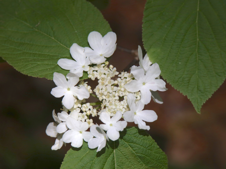 Hobblebush is a rare shrub native to the northeastern United States and Canada. This plant is typically found in shady, moist environments, often near streams or in hardwood forests. The Hobblebush has large, rounded clusters of white flowers that bloom in late spring, attracting a variety of pollinators. Its distinctive foliage, with large, coarse leaves, is often found in the understory of forests, where it can be easy to miss unless you’re looking carefully.