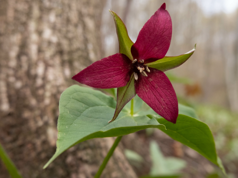 Red trilliums bloom in early spring, marking one of the first signs of seasonal change in forested areas. The plant’s flowers last for only a short time, so those who stumble upon it during their walk are treated to a fleeting yet beautiful sight. With its strong color contrast, the red trillium is both eye-catching and symbolic of the changing seasons.