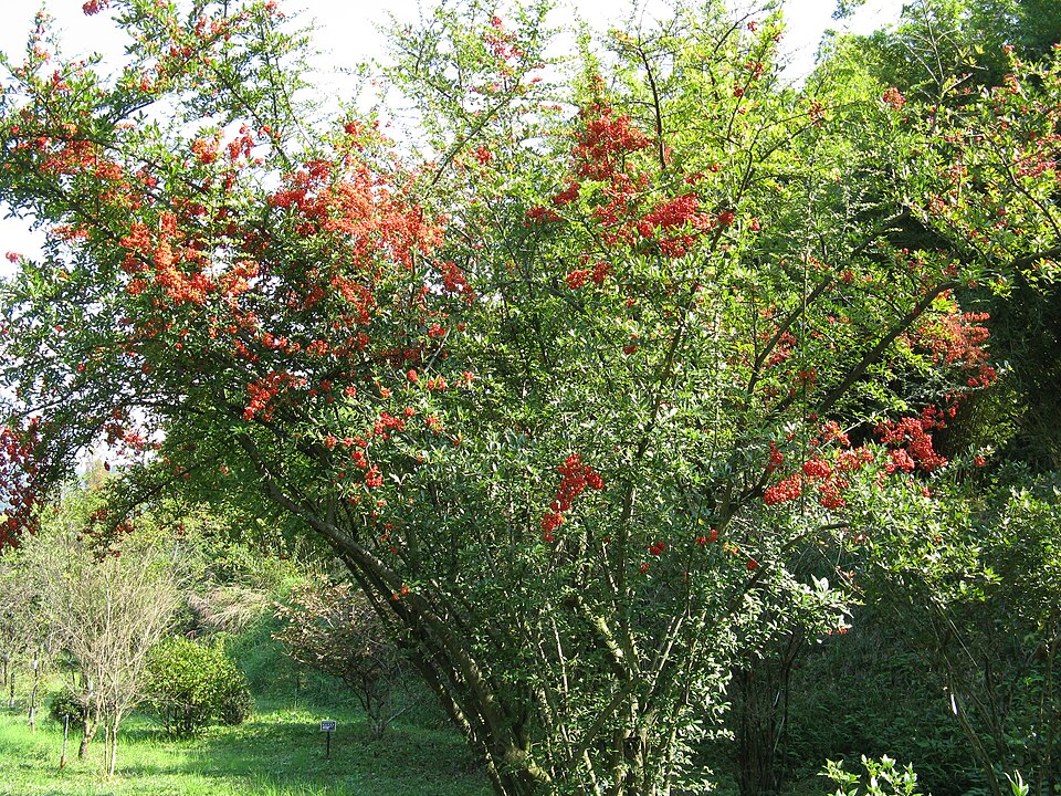 The Firethorn is a hardy shrub that can be found growing on volcanic slopes. Known for its bright red berries, this plant is well-suited to the rocky, nutrient-poor soils found in volcanic regions. Firethorn shrubs are equipped with thorny branches that protect them from herbivores, ensuring their survival.