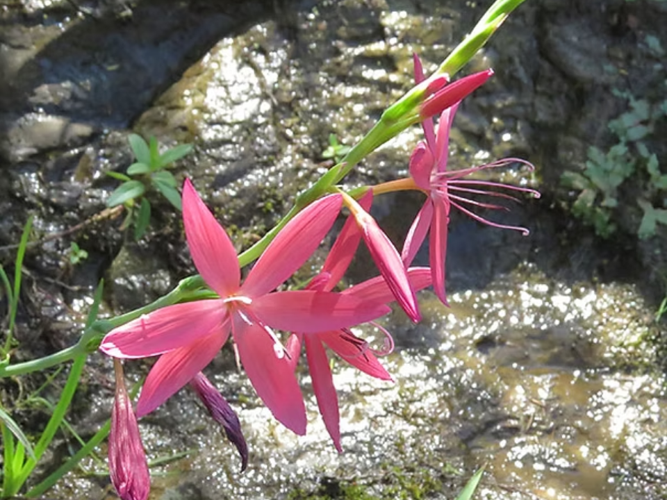 The Lava Lily is native to regions with active volcanic slopes, where it has adapted to survive in nutrient-poor soil. This plant is known for its striking red flowers that bloom during the dry season. Its long, narrow leaves are well-suited to the volcanic environment, as they help conserve water while withstanding intense heat.