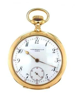 This pocket watch is dated to the end of the 19th century or very early 1900s and made by Patek Philippe in yellow gold. Its rarity stems from its age, material, brand prestige and survival in working condition more than a century later. The continual timekeeping function heightens its value. Current online listings for very similar items show asking prices around US$300,000-600,000, sometimes higher for exceptional condition. Because it straddles the turn-of-the-century period, its design and mechanics reflect an important transition in watchmaking.