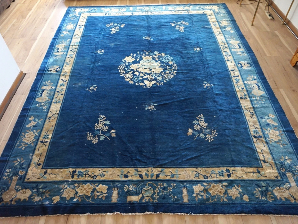 A Chinese Peking rug in good condition can fetch anywhere from $5,000 to $50,000, depending on its age, craftsmanship, and the quality of silk used. What sets these rugs apart is the richness of the design and the high knot count, which results in a luxurious, silky texture that is pleasing to both the eye and touch. Over time, Peking rugs have been treasured for their ability to retain their beauty, with the silk maintaining a glossy sheen that enhances the rug’s artistic appeal.