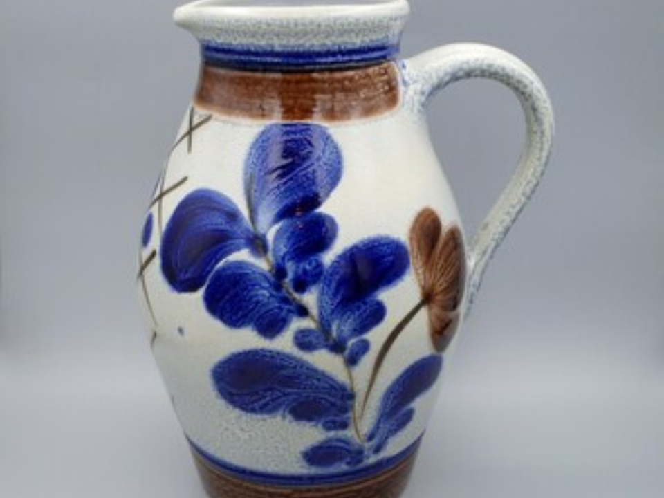 Cobalt‑Decorated Salt‑Glazed Stoneware Pitcher