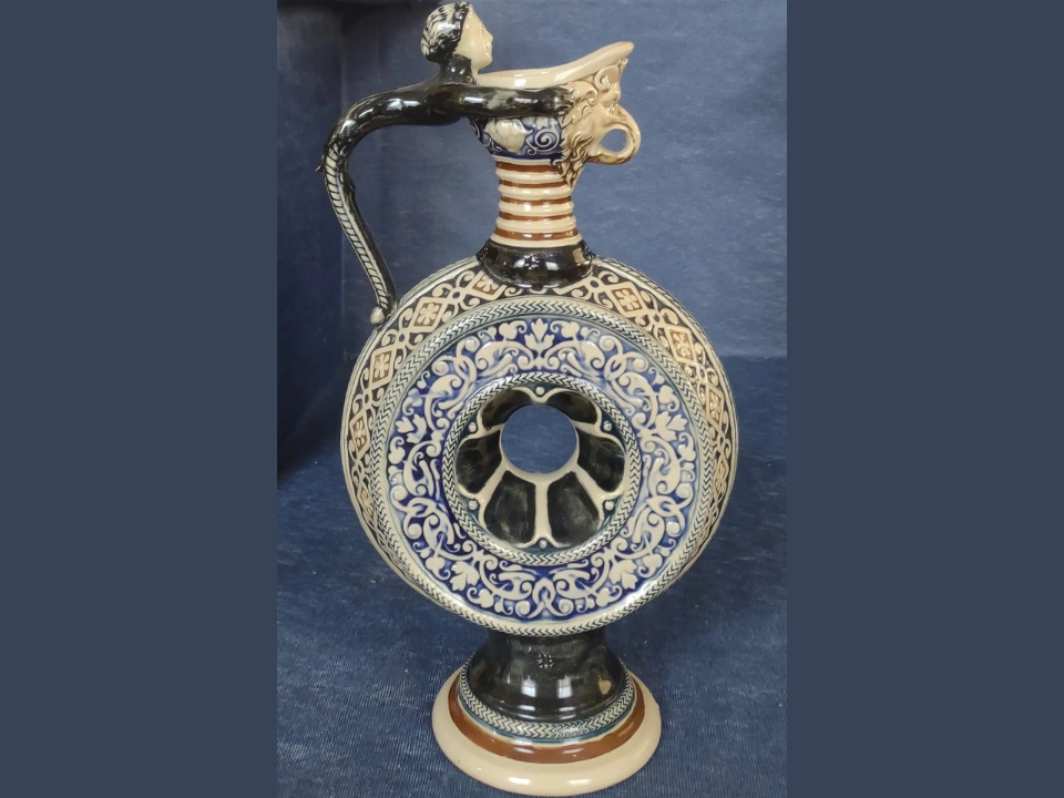 These jugs are deeply tied to the Rhineland region’s ceramic tradition and were exported across Europe. Because of their age, artistic design, and historical significance, these jugs are highly coveted by collectors, with market values often ranging in $1,000 for examples in top condition.