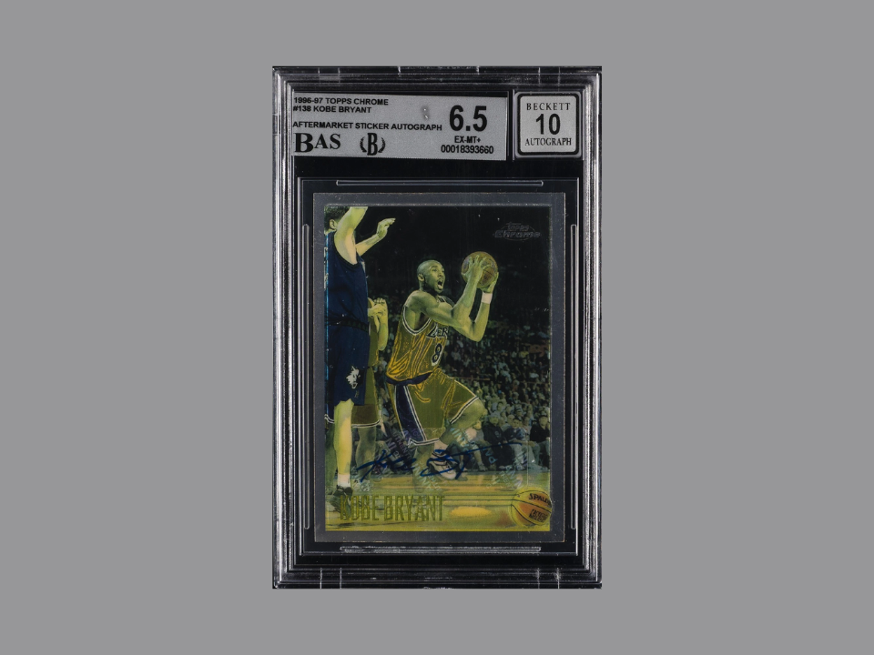 Kobe Bryant’s 1996-97 Topps Chrome Autograph card is one of the most valuable signed cards in basketball. Known for his incredible career with the Los Angeles Lakers, Bryant’s autographed cards are a must-have for any collector. This card features a clean signature and is authenticated by BGS, which adds credibility to its value.