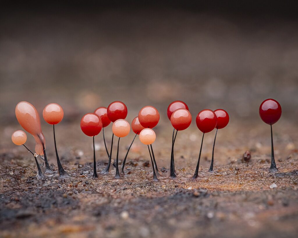 Licea kleistobolus grow on decaying wood or leaf litter, exhibiting intriguing behavior. This slime mold forms networks to decide the most efficient growth paths, mimicking tiny brains. It spread quickly across the environment in search of food, responding to environmental stimuli and optimizing nutrient acquisition. Its ability to navigate its surroundings in a seemingly intelligent way makes it a fascinating organism.