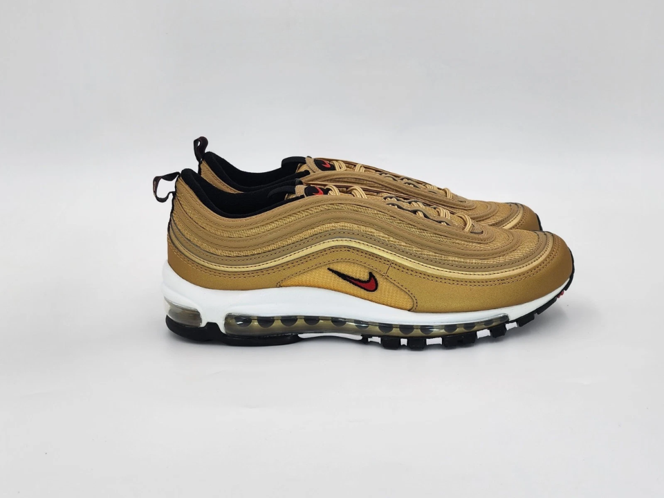 The Nike Air Max 97 “Gold Bullet” has become a symbol of sneaker culture since its release in 1997. The sneaker’s sleek design with reflective silver and gold details made it a standout piece in Nike’s Air Max line. The “Gold Bullet” was particularly significant because it was part of the Air Max 97’s debut, which introduced full-length visible Air cushioning.