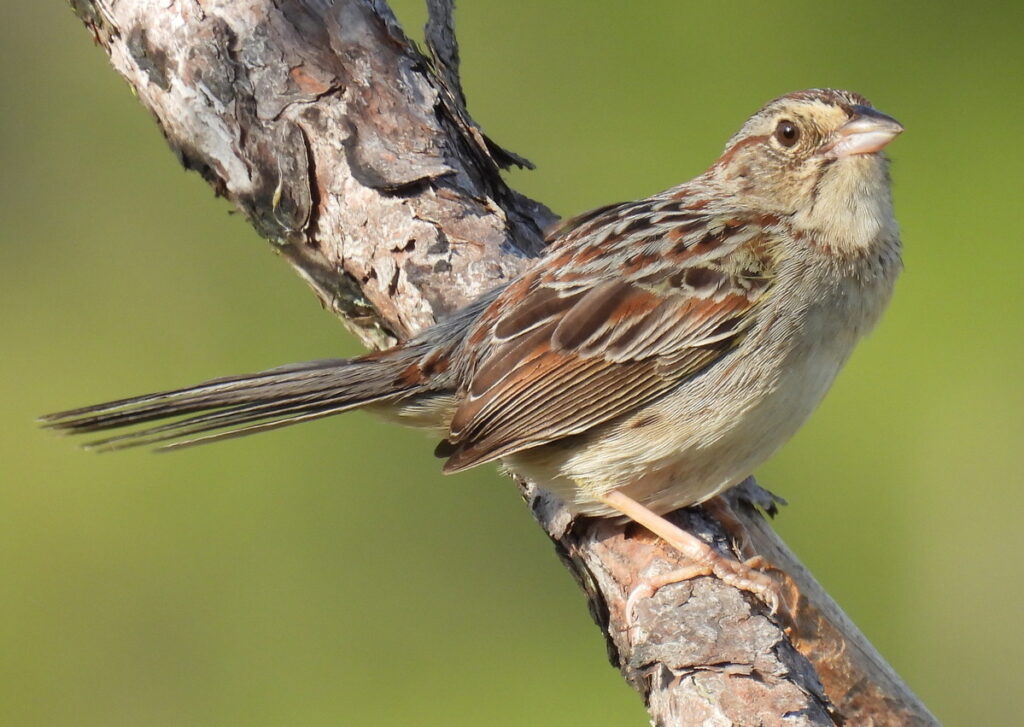 This sparrow has warm brown tones and a fairly plain face compared with flashier species. Fire-managed pine habitat with native ground cover is especially important for it, and those places often produce the best spring listening. In areas where the habitat is in good shape, the song can be one of the classic sounds of the season. It is a bird that rewards slow walks and quiet mornings.