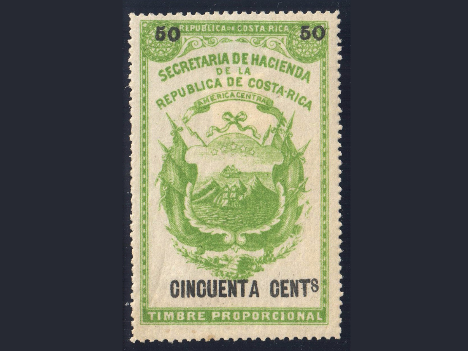 Costa Rica 1870 50-Centavos Color Error, Green Instead of Red