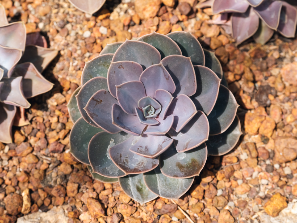 Lithops, often referred to as “living stones,” are a group of succulents that resemble small pebbles. These unique plants are known for their camouflage abilities, blending into their surroundings to avoid detection by herbivores. Lithops come in various shades, including beige, brown, gray, and even purples, with intricate patterns on their surfaces that mimic the look of stones. Their unusual shape makes them look like flat stones or pebbles, creating a striking and subtle presence in any collection.