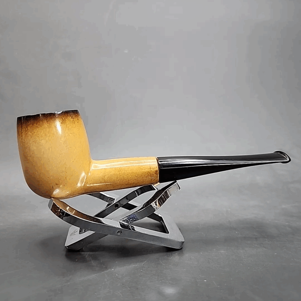 Produced by Kiko, a maker from Tanzania, this pipe was crafted using African block meerschaum, a rarer variant of the material. The use of block meerschaum combined with the artisan’s unique style makes this pipe particularly sought after. Rare examples, especially those in excellent condition, can reach around $1,500–$3,000 USD. The scarcity of the material and the fact that many were custom-made in small quantities drives their high value. Collectors look for these pipes due to their uniqueness and the limited production of Kiko’s works.