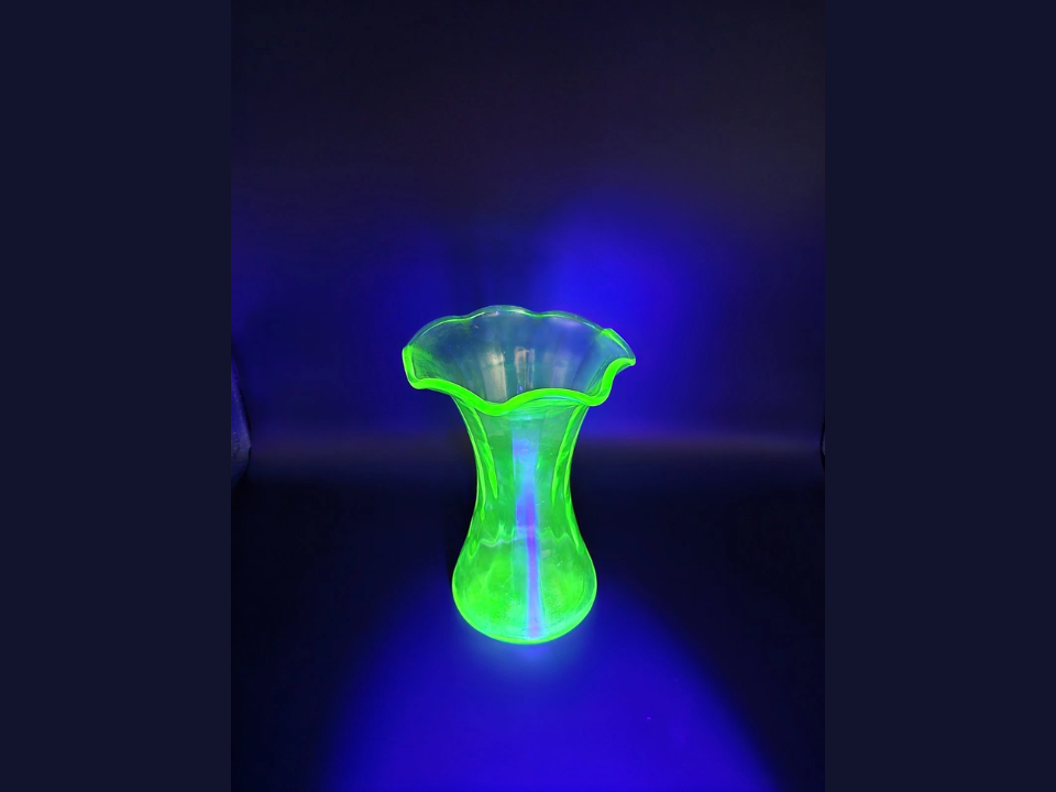 The rarity of the trumpet shape in uranium glass makes this piece especially desirable to collectors. Its value is influenced by the condition of the glass, the quality of the glow under UV light, and its distinct shape. Larger and well-preserved vases such as this one tend to be highly collectible, especially among those who appreciate the unique qualities of uranium glass. Estimated value: near $4000