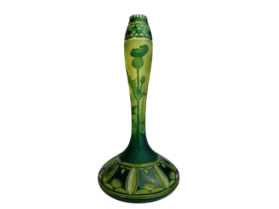 The true value of this vase lies in its combination of fine craftsmanship, age, and rarity. As one of the few uranium glass pieces from Val Saint Lambert, it holds great appeal among collectors who value both the historic nature of the glasswork and the glow effect. Its current market value is influenced by its condition, size, and the prominence of the maker’s mark, making it a highly coveted item among glass collectors. Estimated value: approximately $35,000