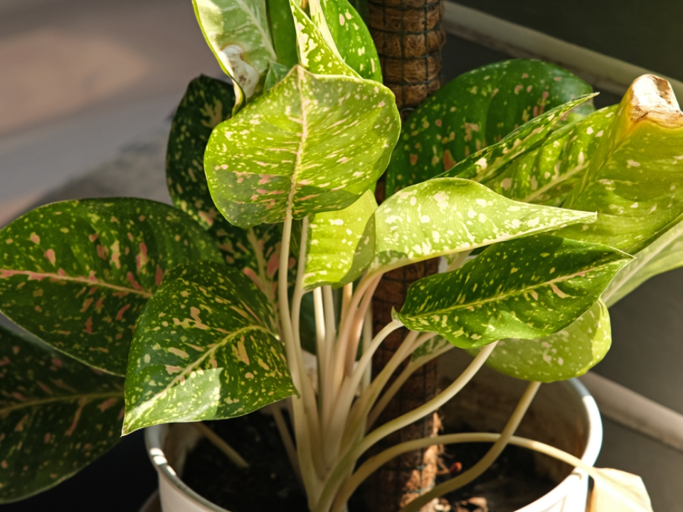 Aglaonema is a popular houseplant known for its striking foliage, and the variegated variety takes this to the next level with its bold patterns. Its broad leaves feature shades of silver, green, and cream, creating a sophisticated and dramatic look that can brighten any room. This plant thrives in medium to low light, making it an excellent choice for areas of your home that receive indirect sunlight.