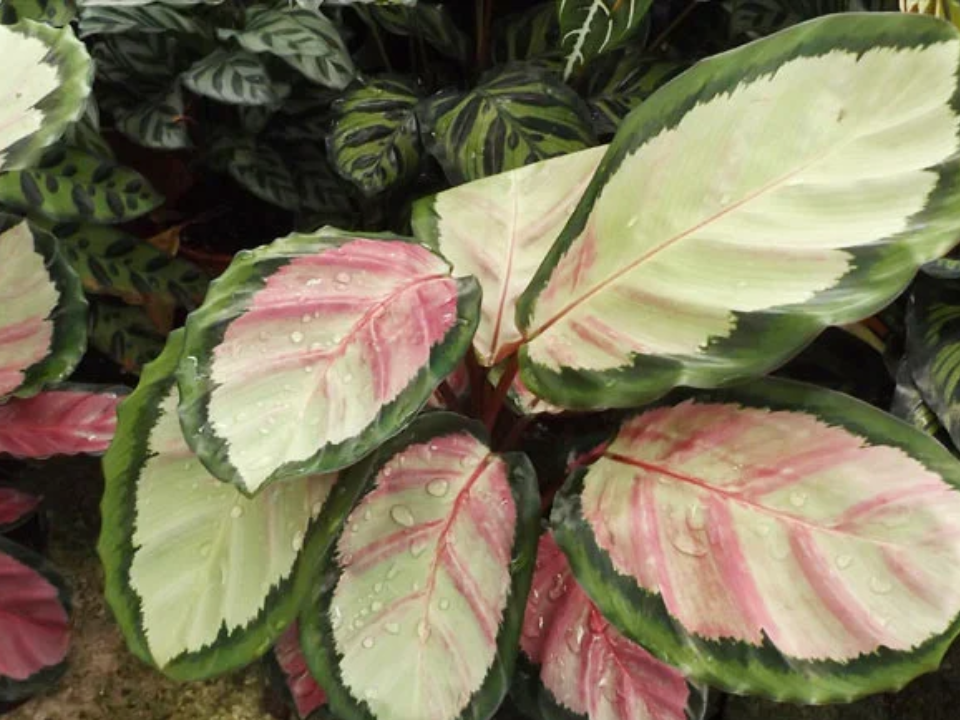Calatheas thrive in medium to low light conditions, making them perfect for indoor environments. They prefer humidity, so regular misting or a humidity tray can help maintain their health. This plant requires regular watering, but it is important to allow the soil to dry out slightly between waterings to avoid root rot.