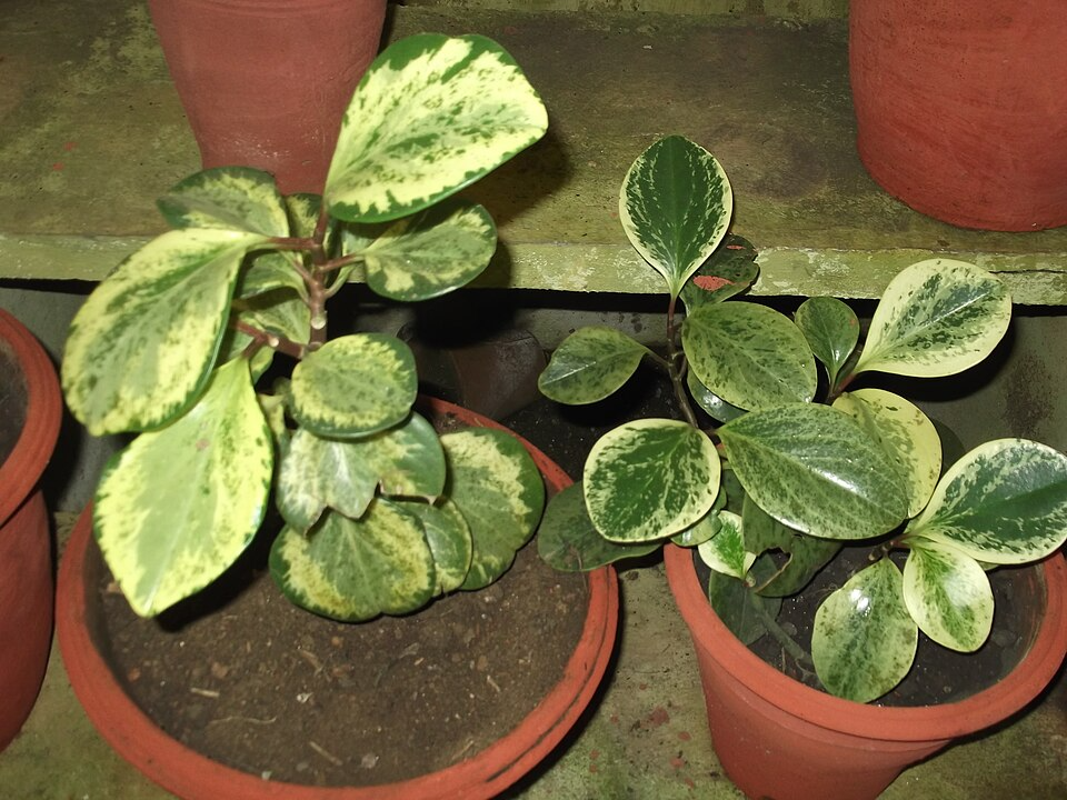Peperomia is a genus of small, compact plants known for their attractive foliage, and the variegated varieties are particularly striking. Variegated Peperomia has leaves with cream, yellow, or white patterns that contrast against the dark green base color, creating a stunning effect.